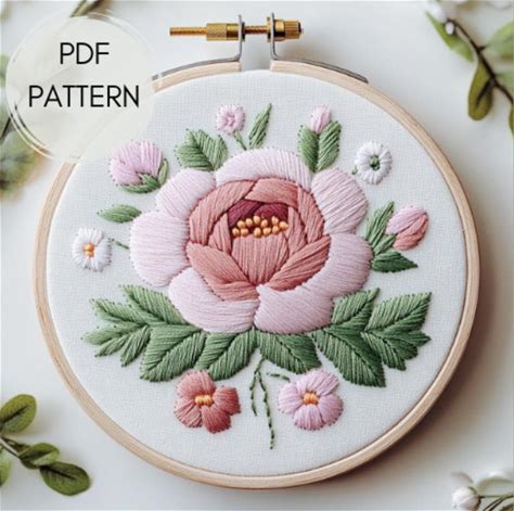 Elegant Peony Flower Embroidery Pattern: Hand Stitching Template (PDF File)