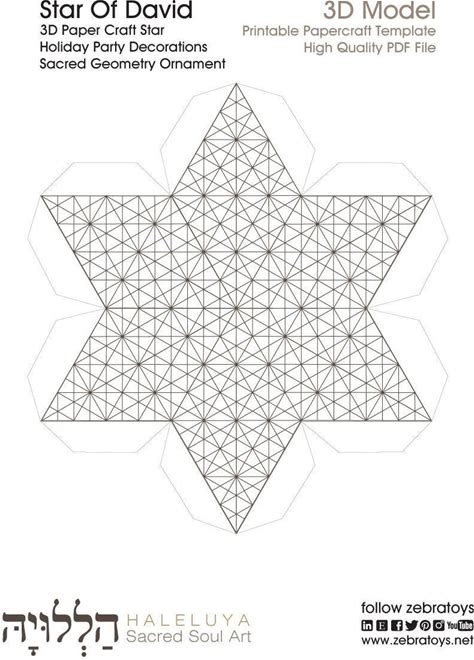 David Star Paper Decoration-Handcrafted 3D Papercraft Star Model To Print-Holiday Party Homemade Decorations-Printable Template-DOWNLOAD