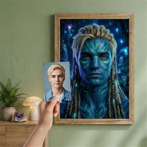 Personalized Fantasy Portrait From Photo | Sci-Fi Blue Alien | Magical Forest Creature Wall Art | Digital & Print Gift For Film Fans